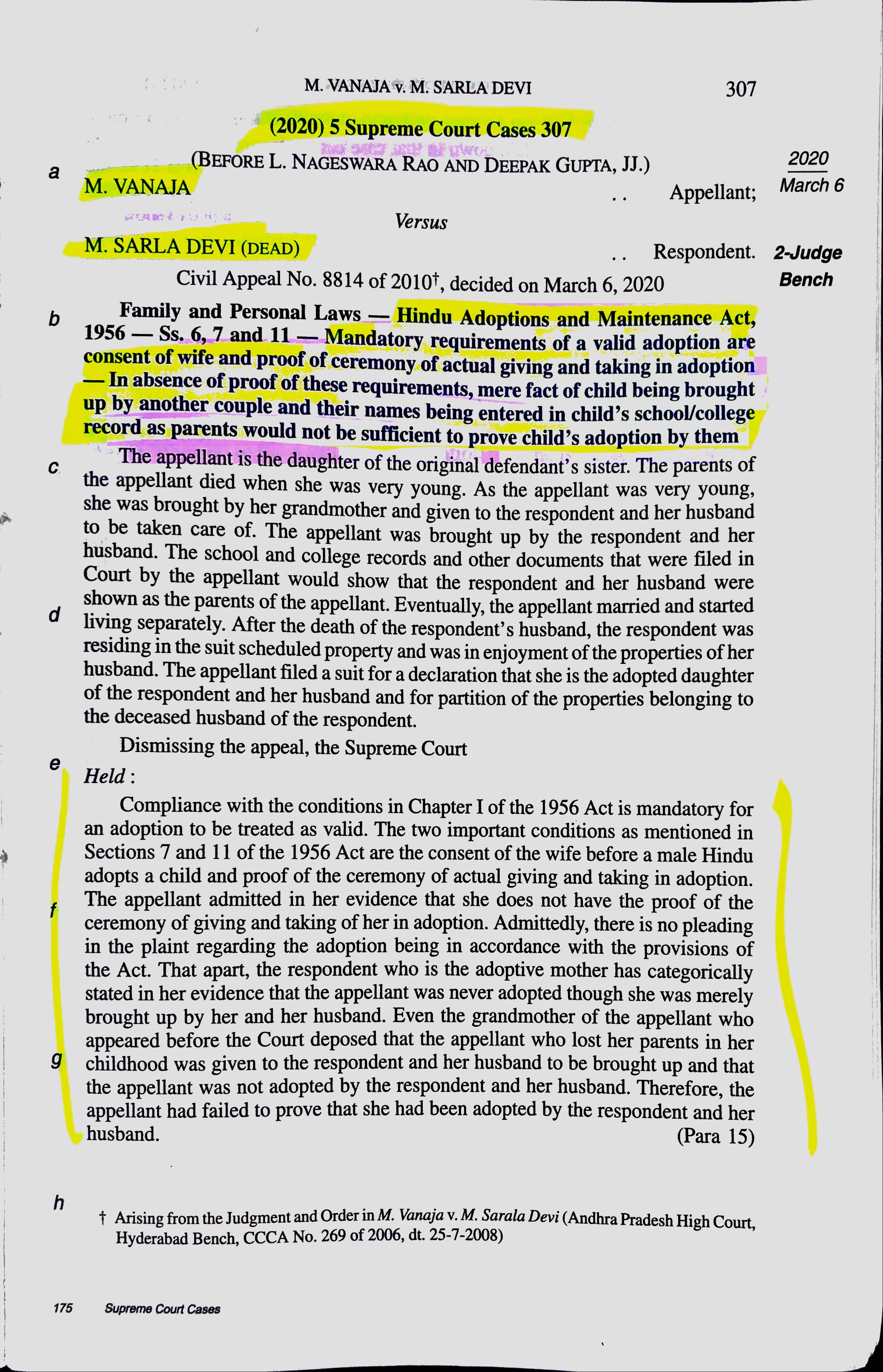 M. Vanaja vs M. Sarala Devi (2020) 5 SCC 307.