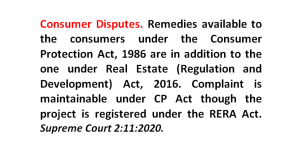 HELD: On the strength of the law so declared, Section 79 of the RERA Act does not in any way bar the Commission or Forum under the provisions of the CP Act to entertain any complaint.