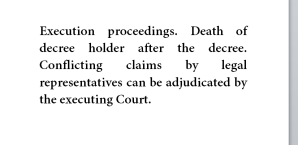 Relevant Paragraphs: 8. We may state that Order XXII of the Code is applicable to the pending proceedings in a suit. But the conflicting claims of legal representatives can be decided in execution proceedings in view of the principles of Rule 5 of Order XXII.