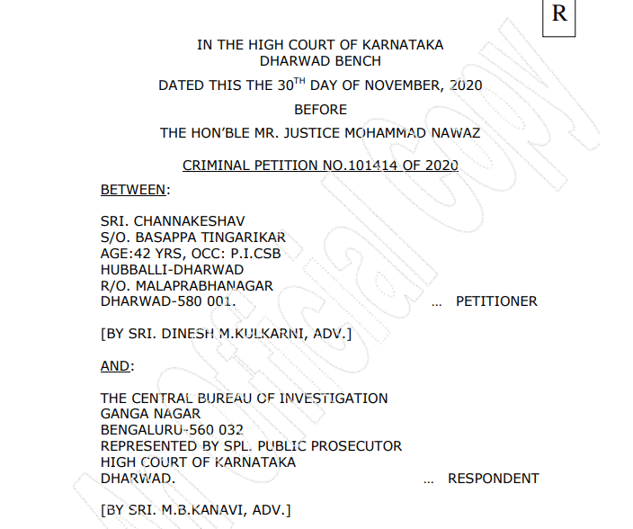 Judgment Link: http://judgmenthck.kar.nic.in/judgmentsdsp/bitstream/123456789/351465/1/CRLP101414-20-30-11-2020.pdf