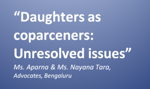 Daughters as Coparcners: Unresolved issues. (Article courtesy, Madras Law Journal). Posted byrajdakshalegal December 29, 2020December 29, 2020 Leave a comment on Daughters as Coparcners: Unresolved issues. (Article courtesy, Madras Law Journal). Ms. Aparna and Ms. Nayana Tara, Advocates, Bengaluru Article in PDF form enclosed. daughters-as-coparcners-unresolved-issuesDownload Share this: Click to share on X (Opens in new window) X Click to share on Facebook (Opens in new window) Facebook Like Loading... Published by rajdakshalegal Senior Advocate, High Court of Karnataka, Bengaluru View more posts