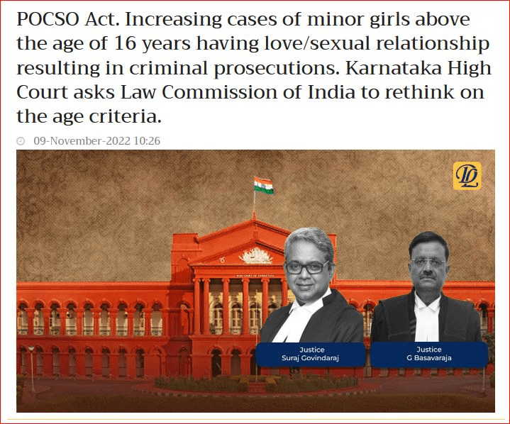 The Law Commission, while referring to Karnataka High Court Judgement recommends amendment to POCSO Act to address situations where there is approval, even if not explicit consent in the eyes of the law, from children aged between 16 and 18 years who are in intimate relationships. The Commission says that such cases should not be treated with the same severity as those that were originally envisioned to fall under the POCSO Act.