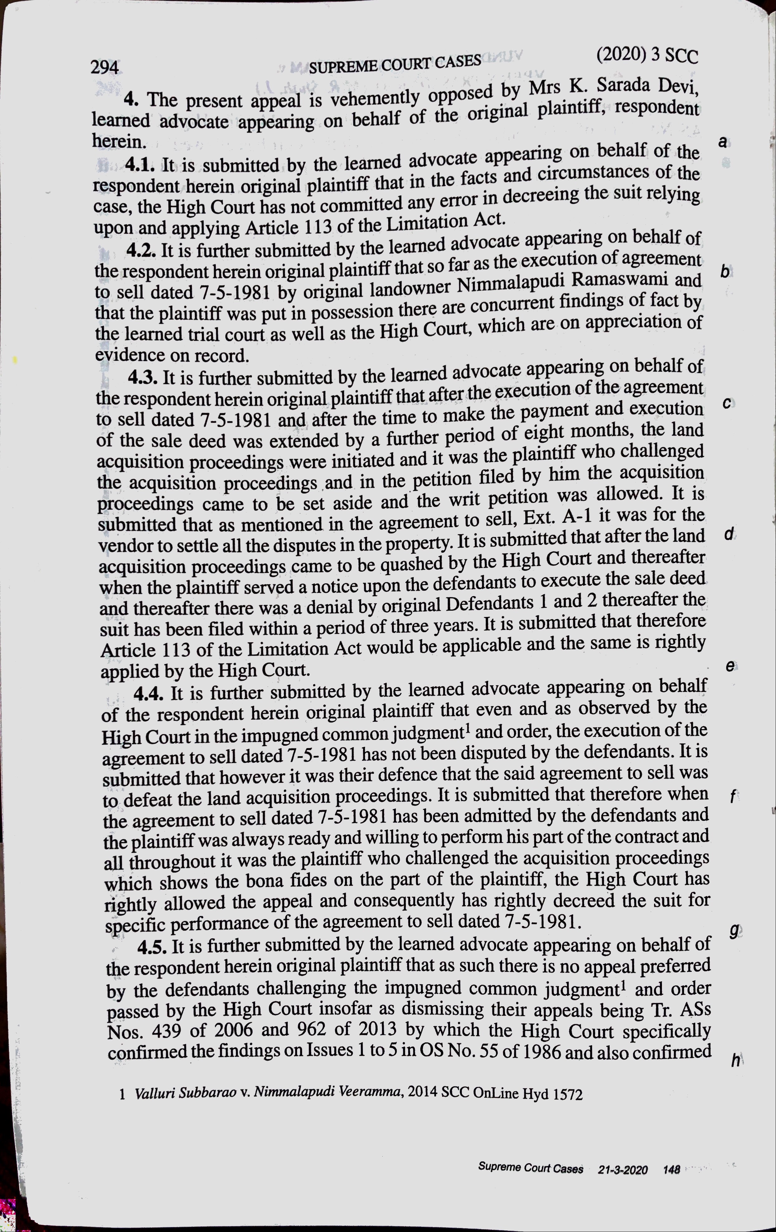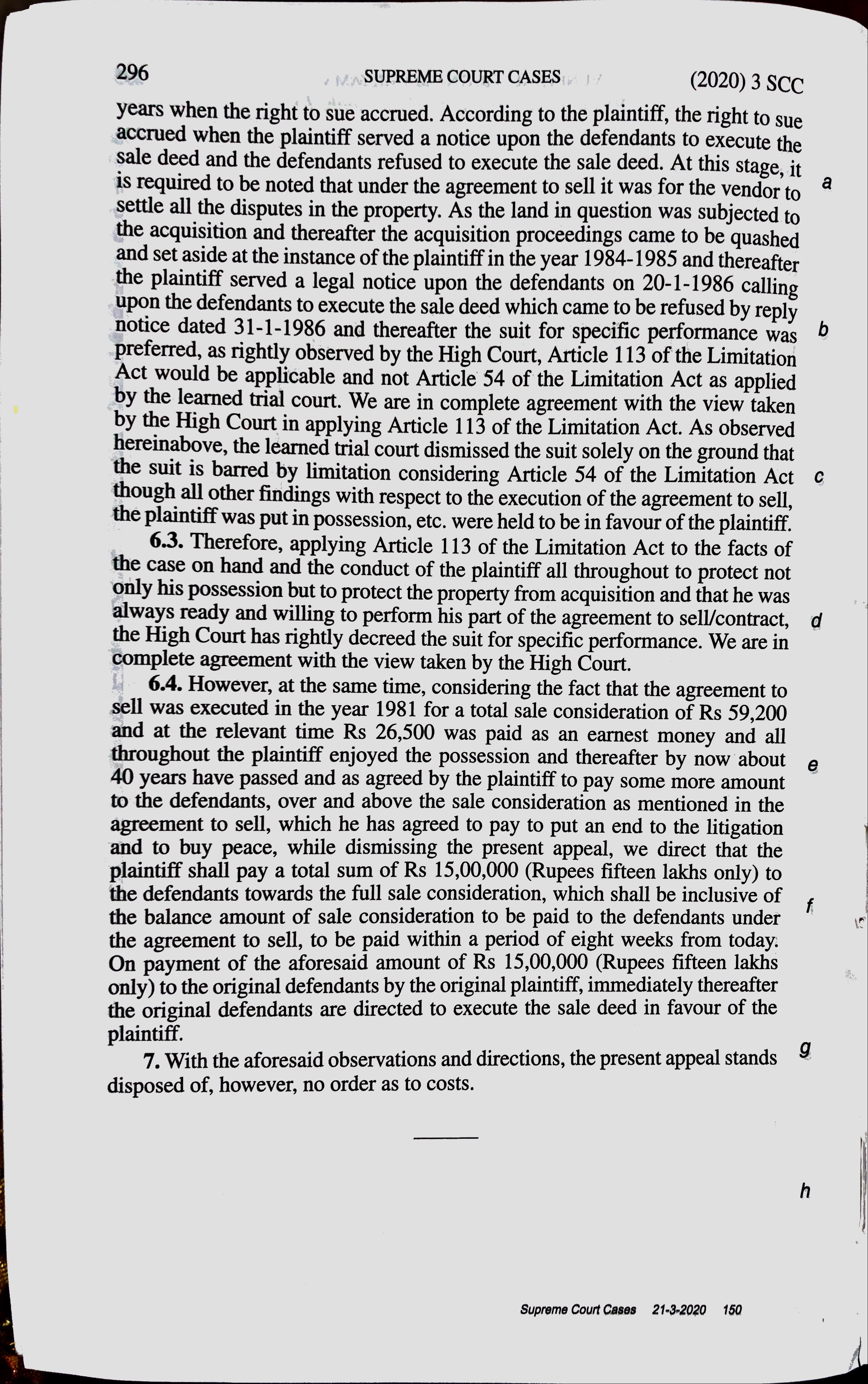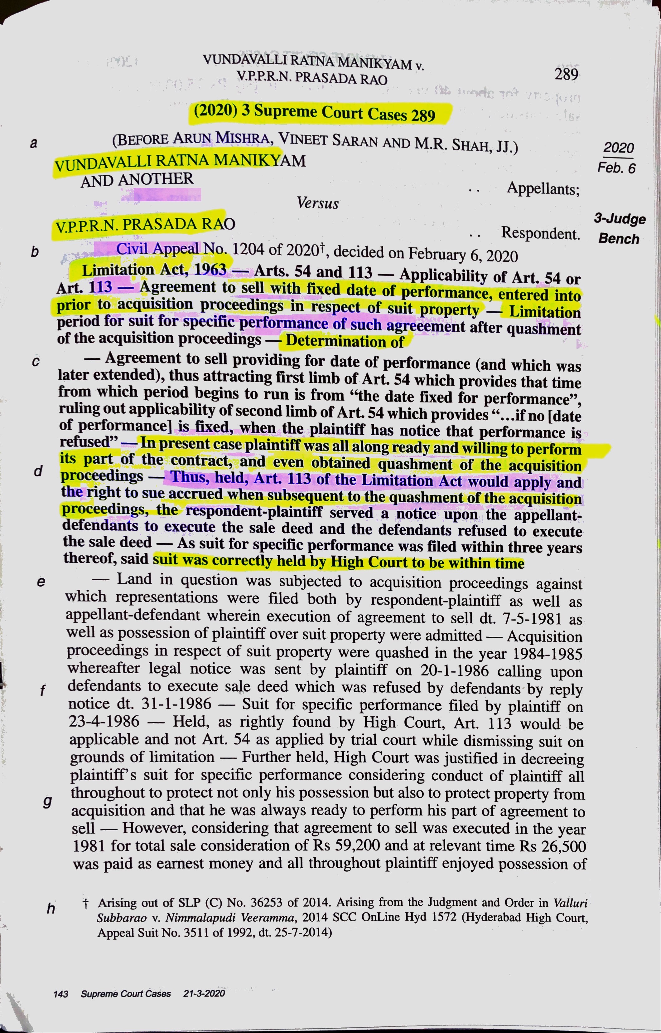 Agreement to purchase. Acquisition proceedings initiated after the agreement. Acquisition proceedings were quashed at the instance of the purchaser. Time to sue for specific performance commences after quashing of the acquisition proceedings. The plaintiff has always been ready and willing to perform his part of the contract.